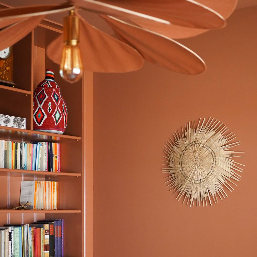 Die ursprüngliche Pale-Aufhängung wird im Schloss von Méritein, Georges' Manufaktur in Béarn (Südwestfrankreich) hergestellt. Jedes Blütenblatt ist vollständig von Hand aus einem Rattanstab gefertigt, auf dem ein Baumwollbuttertuch gespannt und mit einer Mischung aus natürlichen Pigmenten handbemalt wird. Alle Elemente der Pale-Aufhängung stammen aus Frankreich.